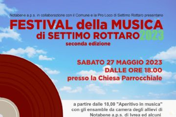 Evento passatoL'ASSOCIAZIONE NOTABENE IVREA A.P.S. in collaborazione con il Comune e la Pro Loco Settimo Rottaro organizza la 2^ Edizione del Festival della Musica. Tutti i dettagli dell'evento qui...