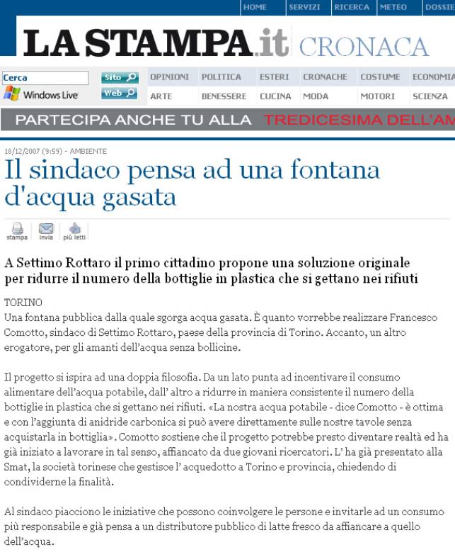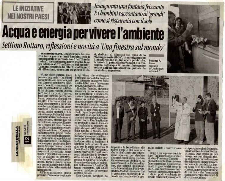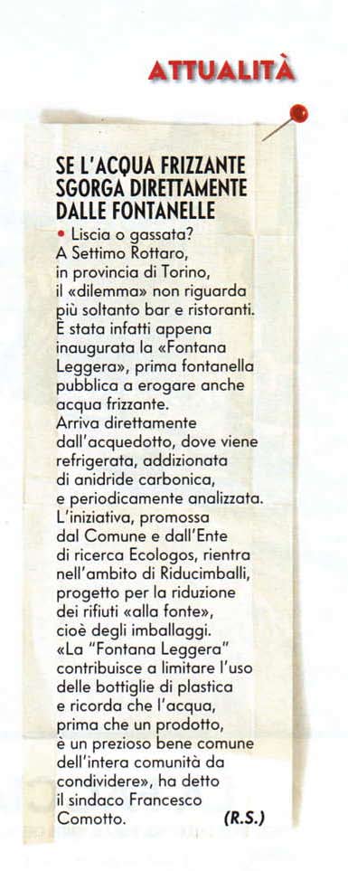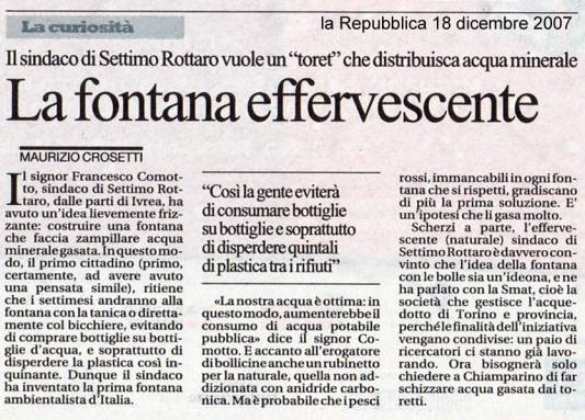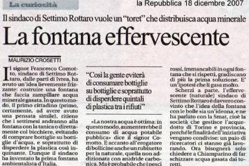 Venendo all’oggetto dell’articolo e cioè la fontanella di acqua frizzante che a Settimo Rottaro inaugureremo domenica 28 settembre nell’area del parco giochi vuole proprio essere un esempio di questo modo di pensare alle politiche del futuro.